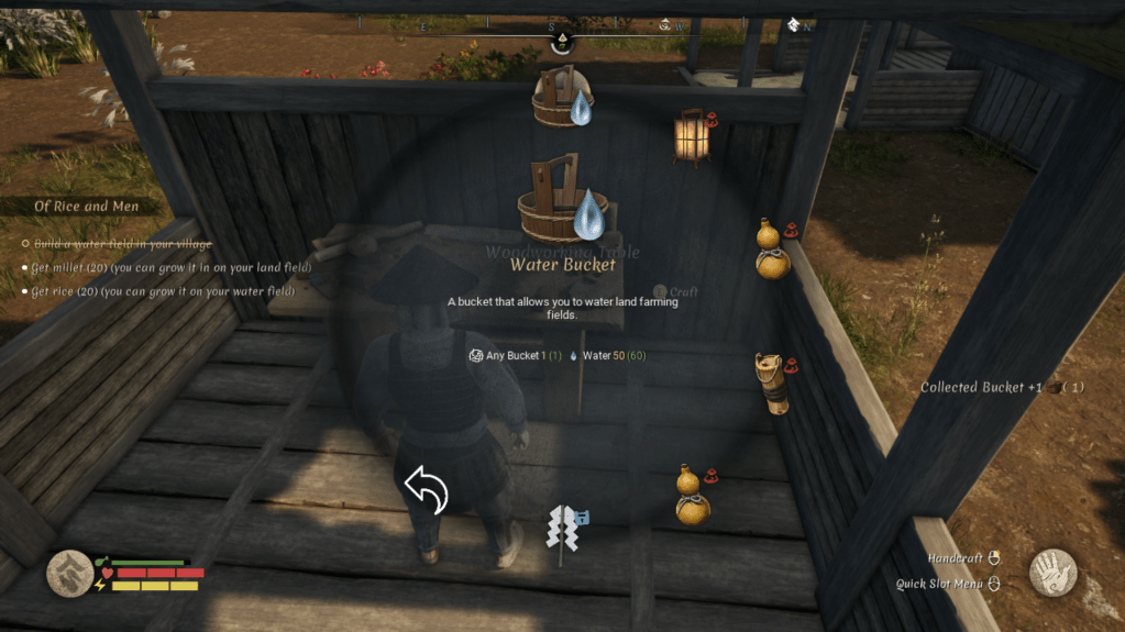 Then go back to the woodcutter’s hut to make your watering bucket.