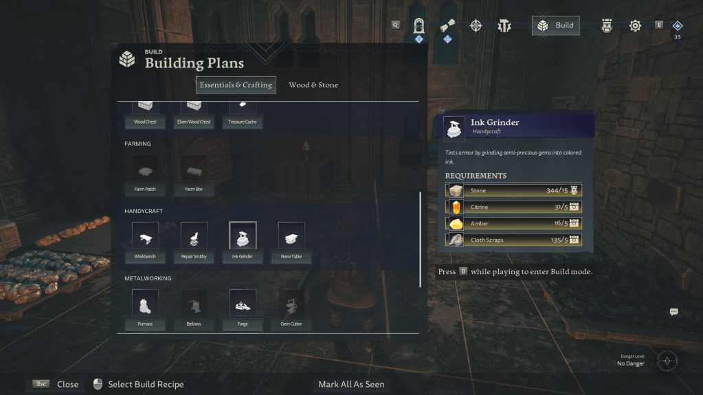 Upon building it, the workbench will unlock a number of recipes with one of them being the ink grinder.