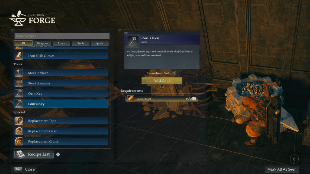 This unlocks the ability to search for and grab another fragment of Durin’s Axe.